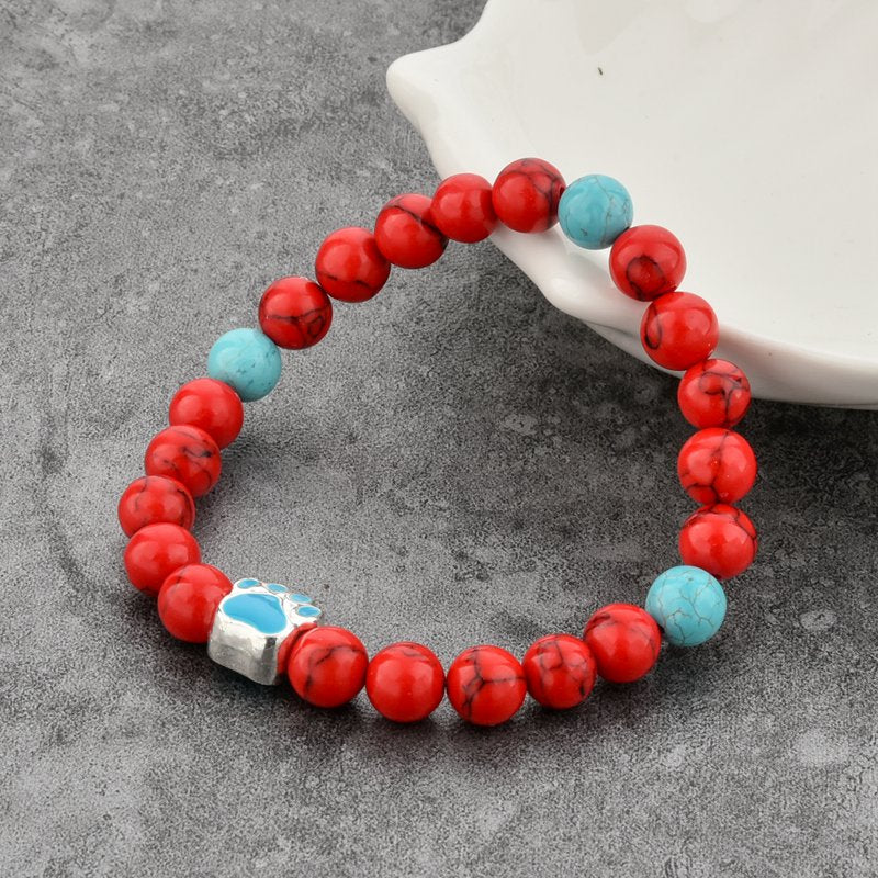 Best Friend Stone Bead Bracelet (Red & Aqua)